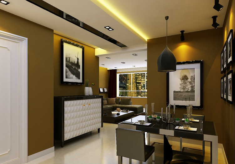 浅色使人感觉轻,深色使人感觉重。通常房间的处理大多是自上而下,由浅到深,如房间的顶棚及墙面采用白色及浅色,墙裙使用白色及浅色,踢脚线使用深色,就会给人一种上轻下重的稳定感。