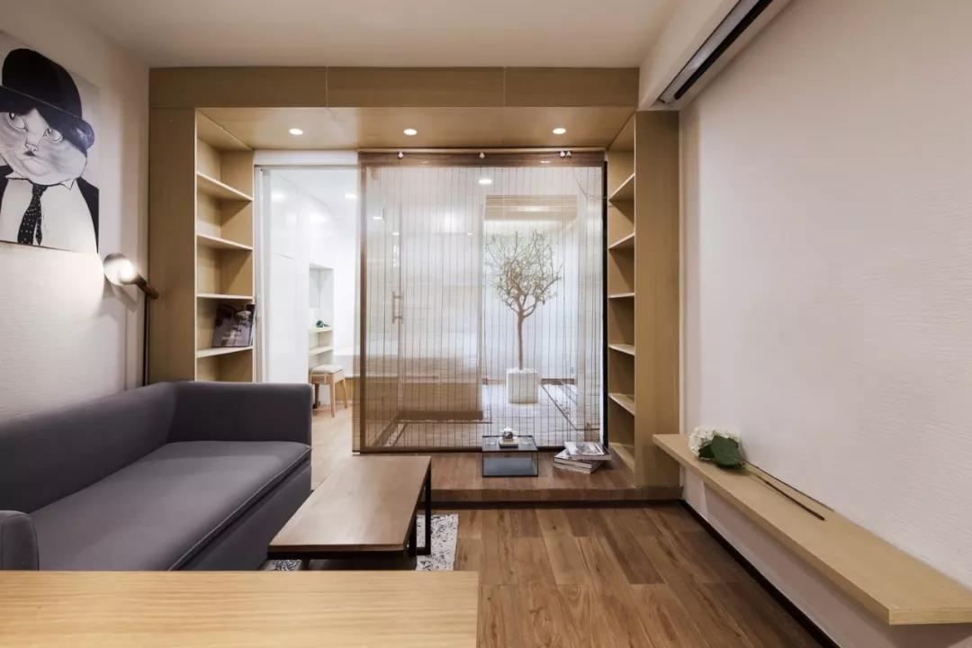 极小空间中,要做好功能空间的区分,只能依靠隔断。隔屏、滑轨拉门或可移动家具等设计,都是比封闭式隔断更好的方法。透光透明的玻璃隔板也是很好的隔断材料。